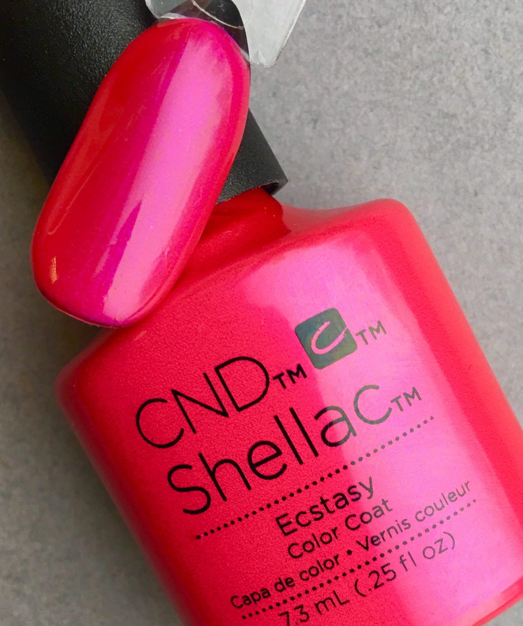 It’s a little darker and more mysterious than the bottle wrap suggests. Contrary to my first thought, it looks nothing like Tutti Frutti, which appears almost dusky by comparison. There is a hot neon pearl undertone running through it which grabs you as it moves in the light. Ecstasy is loud and obnoxious in the coolest way.