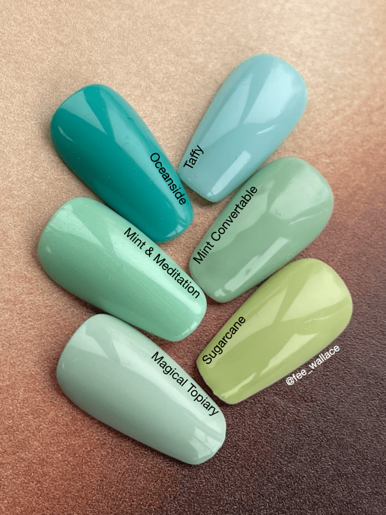 Now this is a spring colour collection! Six new shades and already I’m in love. In this blog we start with our colour comparisons, taking a look at each colour in turn. In our LIVE show on Tuesday we will examining the application experiance, comparing to existing colours in the range, and explore nail designs uniquely suited to these truly beautiful new colours.